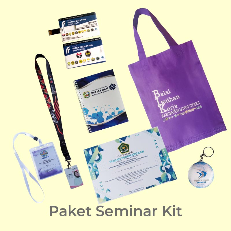 Dengan layanan yang komprehensif dan dukungan pelanggan yang profesional, produsen di Surabaya siap membantu Anda menyelenggarakan acara yang berkesan dan profesional. Segera pesan paket seminar kit dan tas seminar Anda sekarang juga dan wujudkan acara yang sukses dan berkelas di Surabaya!